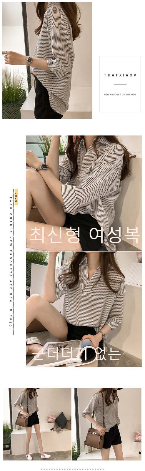半小時前新品上市,勁爆特殺!全場大放送,單件低至NT$432,2020新款夏裝中長款韓版寬松顯瘦條紋襯衫女七分袖,廠家直銷,超值優惠,買到賺到!過後漲價! - 【買一送二】任選3件 僅需NT$1298,單件低至432
