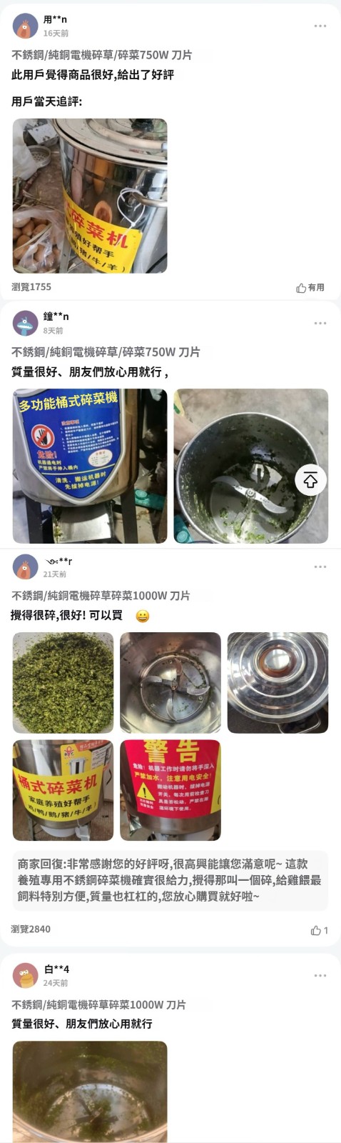 25分鐘前【養殖好幫手】多功能碎菜機,碎菜只需1秒,廠家直銷,貨到付款 量大優惠! - 800W不鏽鋼台式碎菜機--NT$3590