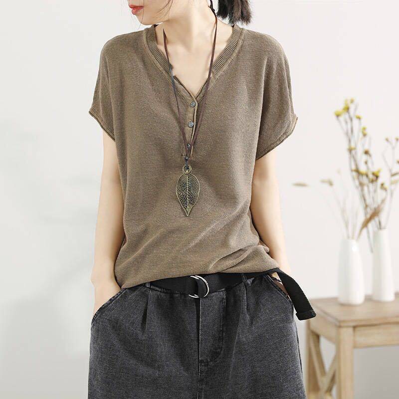 15分鐘前【夏季熱銷款】冰絲薄款V領短袖【超薄透氣】【舒適百搭】【促銷活動還在進行中哦!】 - 【夏季熱銷款】冰絲薄款V領短袖